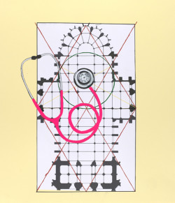 Auf dem Galerieboden wird der Grundriss des Kölner Doms abgebildet, mittels farbiger Linien scheinbar vermessen und gegliedert. Der vermeintliche Ort des Altars wird von einem großen Stethoskop besetzt, das die Aufschrift „Art is a Doctor“ trägt. Diese Affirmation verbindet die Installation mit Zeichnungen und Videoarbeiten in der Ausstellung. Die Künstlerin stellt damit aber auch den Besucher vor eine Aufgabe: Er soll die Werke betrachten und die darin enthaltenen Nachrichten aufnehmen wie Medizin.